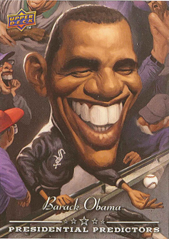 Note from editor: In case you weren’t aware, Upper Deck put out some very cool Presidential Predictor cards last year to coincide with the election. Aside from featuring some creative images of the candidates (sometimes in classic sports poses), we also ran a sweepstakes where the winner would get to throw out a first pitch at a Major League Baseball game. The winner was just selected: check out the story (and some of the cards) below!