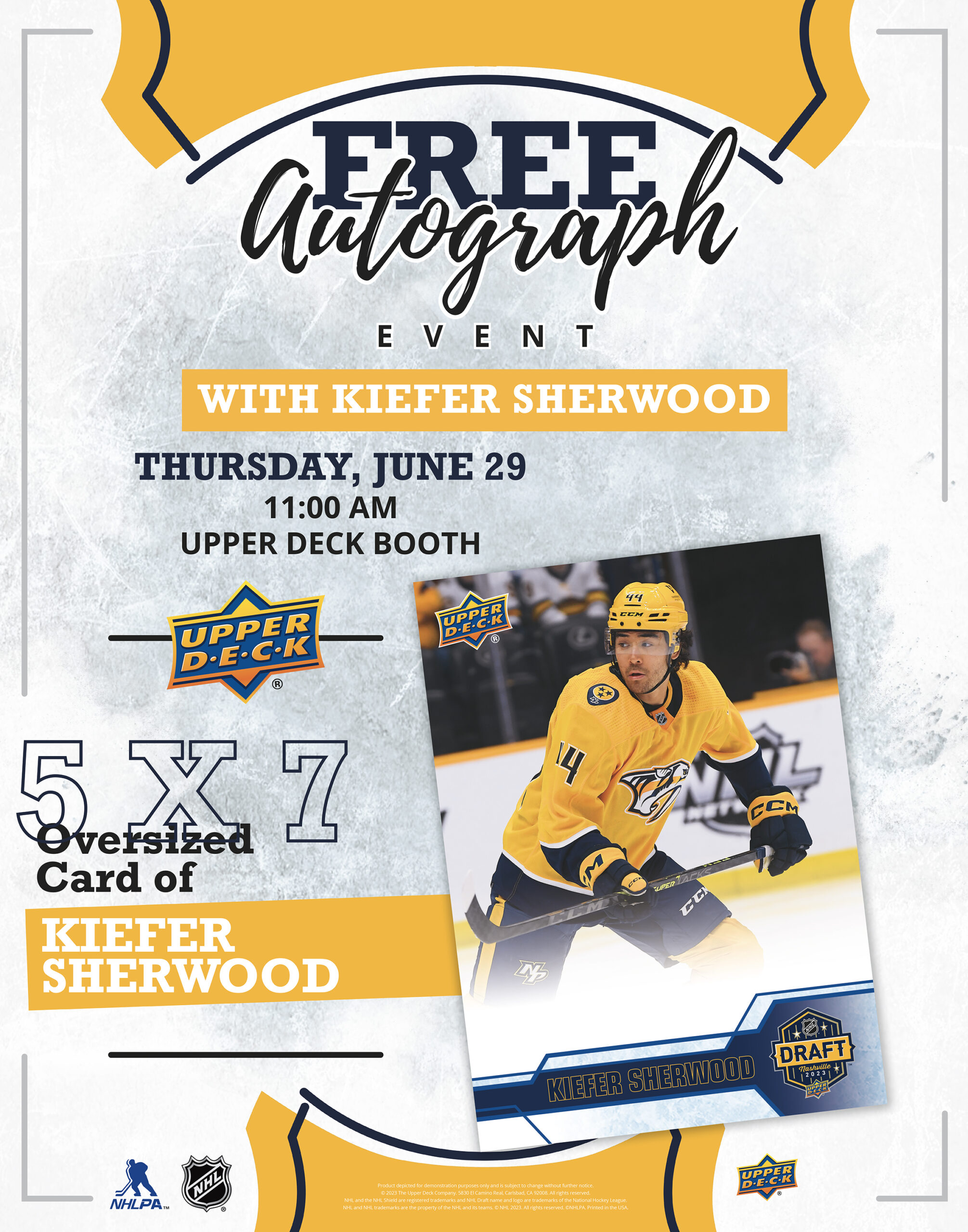 Keep an eye out for our dedicated street team in downtown Nashville from June 27th to June 29th! The team will be near the Bridgestone Plaza to interact with fans and visitors. Come ready with friends and family to take pictures with our fun photo op to celebrate the NHL Draft™. Be sure to share your pictures on socials by tagging @UpperDeckSports and using #CollectTheBest.