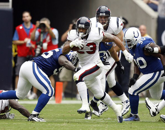 It’s impressive that he won such a major role coming into the season considering he was an undrafted free agent and had to compete with the likes of Steve Slaton. Slaton had been a disappointment but the smart money said it was at best some kind of timeshare while they tried to fix Slaton and get him back to what he was (albeit briefly) in the past. Instead the reigns were given to Foster, and he has responded by putting up elite numbers as a feature back. He does everything well from avoidance to acceleration to pounding it up the middle, and he can catch balls for good measure. He’s a big reason why the Texans are slowly getting better, and they could turn the corner in the next couple seasons with their passing game complementing Foster and vice versa.
