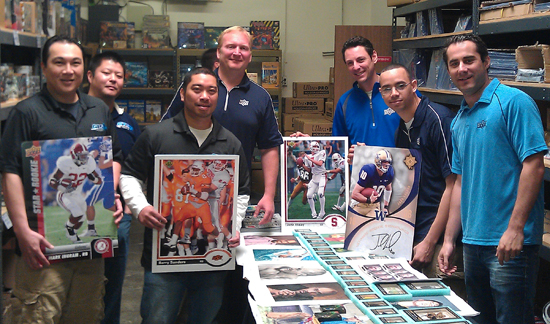 Hobby shop owners from throughout southern California stopped by before they opened their respective shops for another day of sales to spend a little time with the Upper Deck staff and get a sneak peek at what UD is coming out with next. The first order of business was discussing 2011 Upper Deck Football which hit store shelves today. One of the big draws in this product is the chance to find one of the first-ever, high-definition video trading cards known as EVOLUTION. Hobby shop owners stood open-mouthed as they watched these cards come alive for the first time.