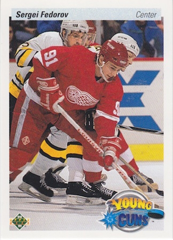 The 1990-91 UD hockey set was great for many reasons and not the least of which being the first Young Guns set. The first set had the two biggest rookies of the era with Russian imports Sergei Federov and Pavel Bure.