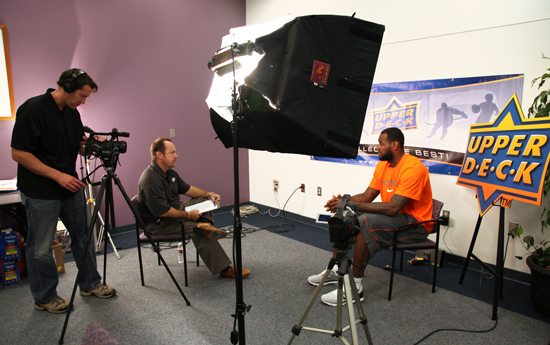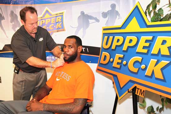 This past Saturday, July 31, was a special day in Upper Deck’s history. It also marked a significant day for yours truly. You see, Upper Deck Authenticated (UDA) had secured an autograph-signing session with company spokesman LeBron James during his King’s Academy Basketball Camp, which was being held at nearby Rimac Arena on the campus of UC San Diego. The meaningful part for me was the fact that I got to interview LeBron, face-to-face, on camera. I was pumped.
