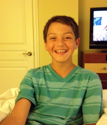 One happy kid: Salvatore after hearing the news from his parents that he would be Upper Deck's 2012 NHL Draft Runner.