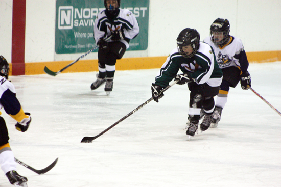 Salvatore weaving his way through defenders with the puck.