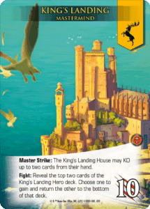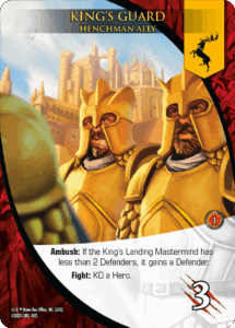 King’s Landing carries with it the full might of the Crown and the Court of King Robert Baratheon. Great knights, powerful royal guards, and the best minds in court all gather here to ensure the continuation of the Throne and end of its foes. We are going to break down all the cards that can be built into this deck: Defenders, Heroes, Allies & Henchmen, and Masterminds.