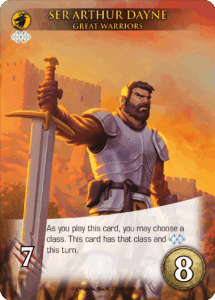 The core of Legendary® is about its heroes, and Legendary®: Game of Thrones™ is no different. Here you represent one of the powerful Houses of Westeros, like the Starks of Winterfell. You can build your deck by generating Recruit points to purchase powerful cards representing iconic characters like Eddard Stark, Arya, and others from the Kingdom of the North. Like previous Legendary products, there are 5 different classes; Strength (green), Instinct (yellow), Covert (red), Strategy (black), and Skill (blue). Paying attention to these classes can help you create powerful combos and interactions that can help you seize victory. King’s Landing focuses on collecting powerful heroes from Ser Arthur Dwayne has 7 damage and when played can have both the Skilled class, as well as a class of your choice which could set up strong combos. Council Powers can be discarded to gain ANY hero from any Hero Lineup with a cost of 8 or less, allowing you to steal a very strong hero and turn the tide against the other players.