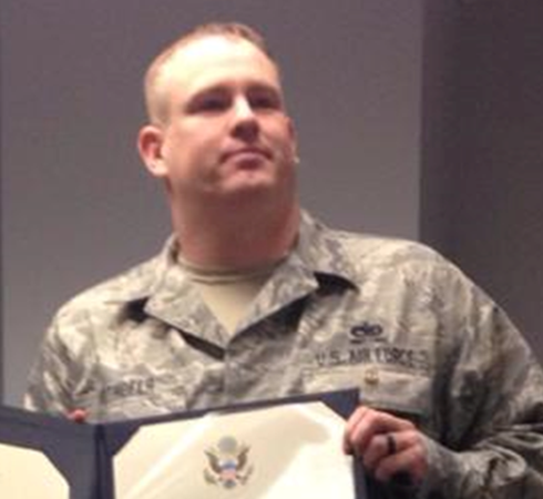 Travis “T-Bone Capone” Arthofer accepting his Honorable Discharge after 22 years of service.