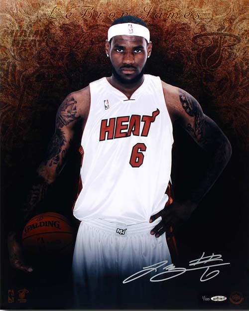 In recognition of tonight’s official Miami Heat debut of company basketball spokesman LeBron James, Upper Deck is creating a special sales promotion. The total number of points that LeBron scores in this evening’s game against the Boston Celtics can be applied to your next purchase of LeBron James signed memorabilia at Upper Deck’s online store. For instance, if he scores 32 points, simply type in promotion code LEBRON32 at checkout stage and a 32% discount will be applied to your overall purchase. If he scores 45 points, the promo code will read LEBRON45. It’s as simple as that. Now we just have to wait and see how many points LeBron tallies tonight and the rest is up to you! The special code will be valid from 9 a.m. (PT) on Wednesday, Oct. 27, through 3 p.m. (PT) on Friday, Oct. 29.