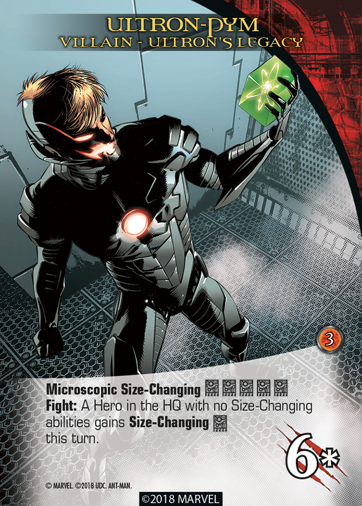 The Size-Changing keyword returns from Legendary®: Civil War and Legendary®: Champions and represents Heroes and Villains using superpowers to shrink, grow, or massively change their size. It’s also used by characters that can change the size of a weapon, technology, or energy.