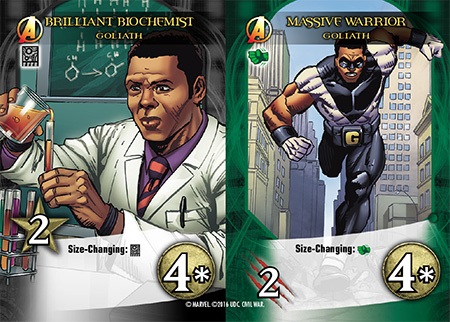 Size-Changing represents Heroes and Villains using superpowers to massively change their size. A card with Size-Changing allows a player to recruit that card for 2 less Recruit points if they have played a specific Hero Class. This discount is not stackable.