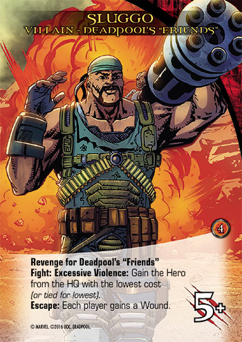 Once per turn, you can spend one Attack point more than you need to fight a bad guy “using Excessive Violence.” If you do, you get to use all the Excessive Violence abilities on Cards you’ve already played this turn.