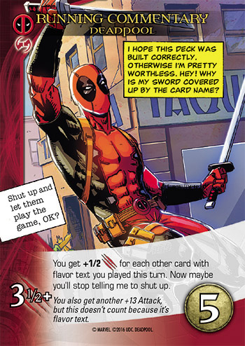 Some say Deadpool is half-good and half-bad. Some say he’s half-nuts. Either way he’s brings some half-crazed cards to this expansion with ½ points.