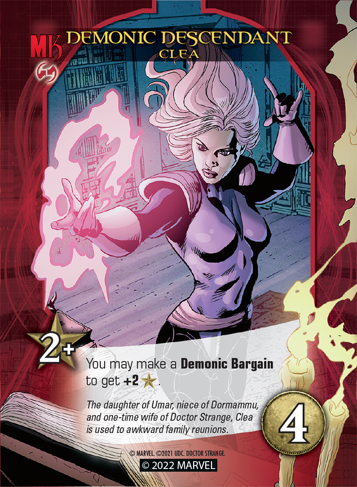 Some cards have you choose which player must make a Bargain for a benefit. When this happens, think carefully about how many cards in your deck cost 0. If most of your deck is still 0-cost cards, it may be worthwhile to seize the power of the Demonic Bargain for yourself! If your deck has lots of high-cost cards, then it may be wiser to choose another player to make the Demonic Bargain instead…