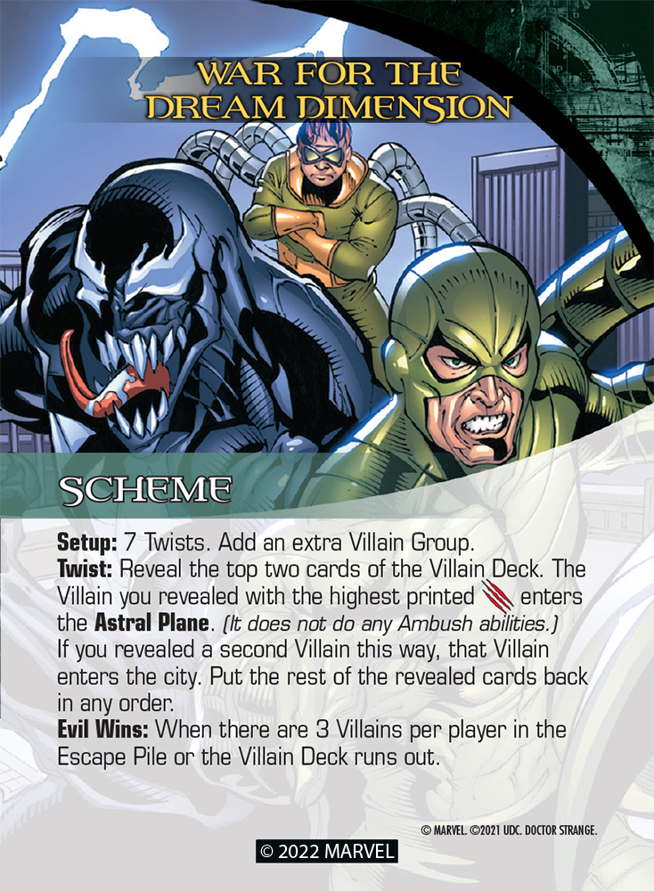 Though their arcane rituals may be complete, other new possibilities and keywords await Doctor Strange and his allies! Transcend present knowledge with our final preview to learn of the other powers at their disposal, and what they’ll be up against from the Netherworld and Fear Lords alike. Peer beyond the veil of your own reality, and gaze further still into Legendary®: Doctor Strange and the Shadows of Nightmare!
