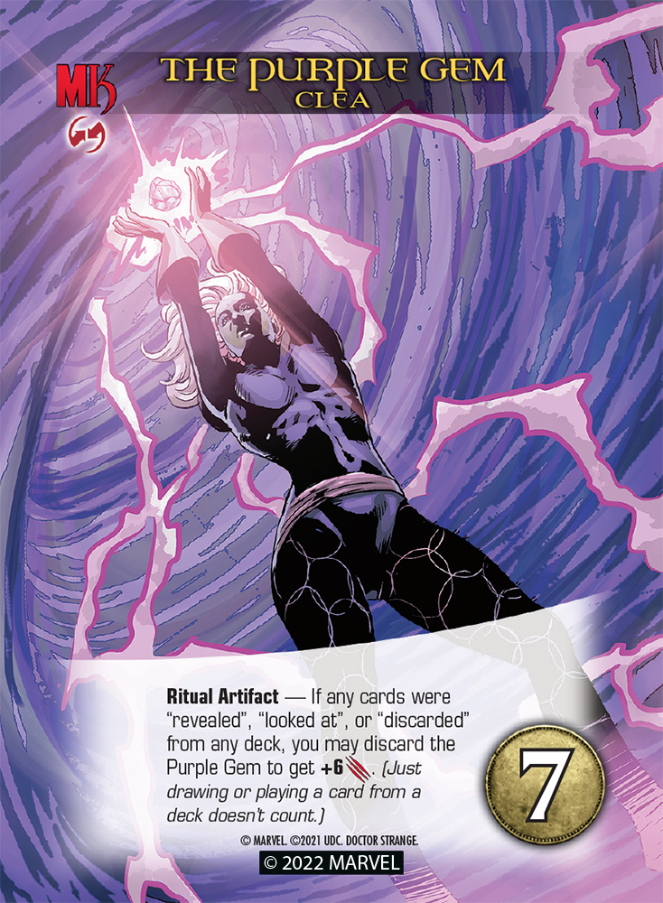 Through many quests, Doctor Strange and his colleagues have uncovered sorcerous objects of staggering ability. These are represented by mysterious Artifact that persist from turn to turn.
