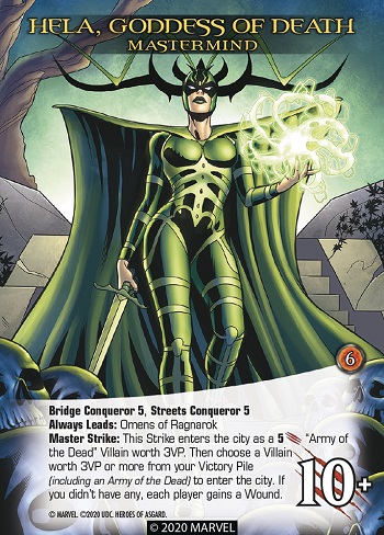 - Other Villains and the Hela Mastermind have different Conqueror abilities, with different bonus numbers and referring to different city spaces.