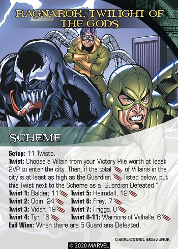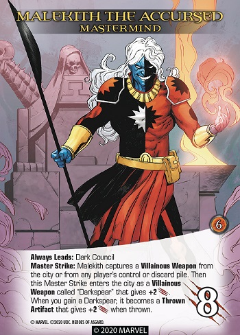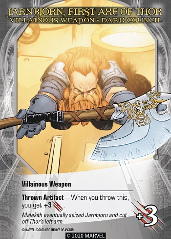 As a new twist on the Artifacts of past sets, Legendary®: Heroes of Asgard introduces an all-new card type: “Villainous Weapons.” Villains and Masterminds can capture these ancient weapons to become even more powerful. But if you defeat them, you can seize those weapons to use as Artifacts of your own.