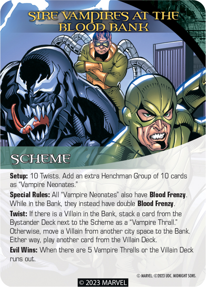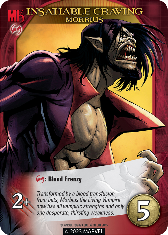 As you make your way through Villains, the power of Blood Frenzy will grow higher and higher for both you and them! Play carefully with it, as well as Moonlight and Sunlight, when Legendary®: Midnight Sons arrives later this Spring.
