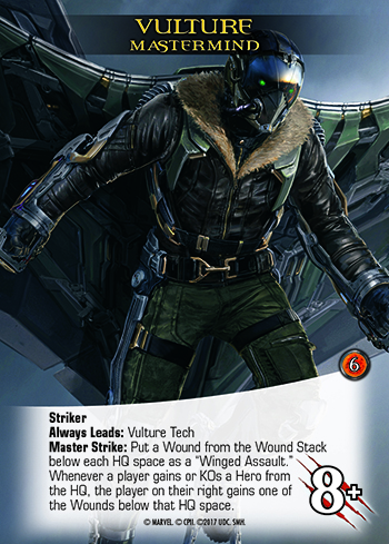 The Striker keyword represents Villains and Masterminds that get more confident and powerful as the Mastermind smashes Heroes. It means “This gets +1 Attack for each Master Strike in the KO pile and/or stacked next to the Mastermind.”