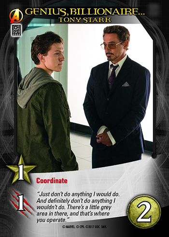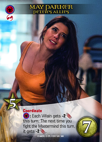 The popular keyword Coordinate arrives in Marvel Legendary® for the first time from the Legendary® Encounters games. It represents how Tony Stark and May Parker act as mentors to Spider-Man in the movie, helping him reach his full potential and become a true hero.
