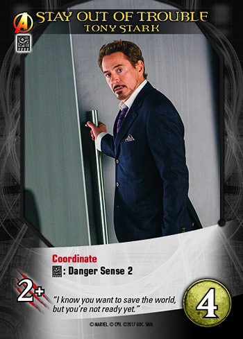 The Danger Sense keyword represents Spider-Man using his famous “Spider-Sense” superpower to detect danger and evade it. It also covers Tony Stark and others watching for threats and rapidly reacting to them.