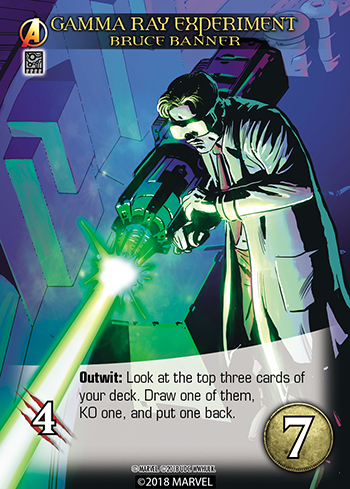 Within Legendary®: World War Hulk exists the duality of Bruce Banner’s brains and Hulk’s brawn, the Outwit keyword is the brains. It represents how Bruce Banner, Amadeus Cho, the Illuminati, and the Intelligencia are among the smartest characters in the Marvel universe.