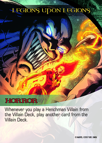 Legendary® X-Men also adds a second, completely new card type to Legendary®: Horrors. These make the game harder in a variety of ways. All the Epic Masterminds explicitly say they add Horrors to the game.