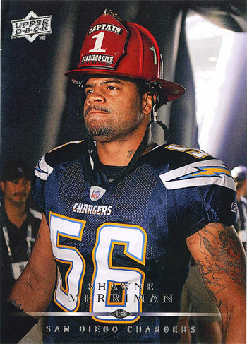Just another day at the office out here in Carlsbad. I can tell you firsthand that Mr. Merriman is one big, athletic dude, with a remarkably nice attitude to match. Along with the rest of the San Diego community, we’ll be cheering on the Chargers this year: with “Lights Out” back to full health, it’s hunting season on opposing quarterbacks yet again here in America’s Finest City. Come for the weather, stay for the sacks.