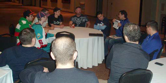 One of my favorite events of the weekend is a private meet-and-greet where we get to spend some time with collectors and share what we have in store for new product launches. It is an excellent opportunity for us to get some great feedback from a great core group of fans in a quiet environment away from noise of the show. For their time and feedback, attendees will be awarded with a complimentary MMA autograph card from a recent Upper Deck product, playing up the fun of UFC 129. This event will take place on Saturday, April 30, at the Expo from 3:00 to 4:00 p.m. We still have about 10 spots remaining so if you are interested in taking part, please email us at upperdeckmarketing@upperdeck.com. We’ll all meet at the Upper Deck Booth at 3:00 p.m. on Saturday and then walk to the meeting room together from there. With Grant Sandground, UD’s NHL product manager sharing some great tidbits on new products, this is really a way for us to pull back the curtain on what we do and let our fans in on the process of making card sets.