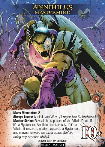 - The Mastermind Annihilus has the variant “Mass Momentum 2.” This means he gets +2