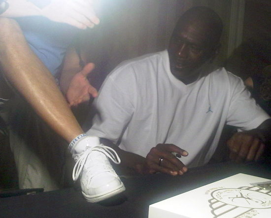 Gott shared that Michael was very supportive throughout the process and that when his turn came to get an item signed, MJ said with a smile, “Put your leg up here on the table.”