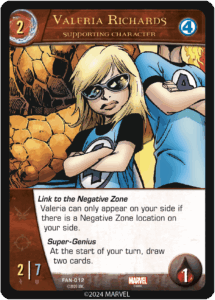 Surprisingly enough, despite the Mister Fantastic mirror, the decks were pretty different! Only a handful of matching cards and matching piles. Between their two lists, they both played Alicia Masters, Blastaar, Lady Deathstrike, Valeria Richards, and Fantastic Four. Completely understandable with the wombo-combo potential of Turn 1 Alicia Masters into Turn 2 7/7 Valeria Richards? *chef’s kiss*