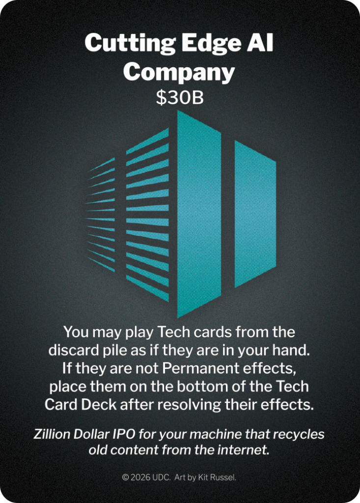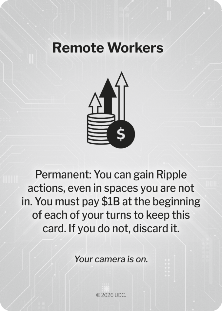 Powerful upgrades and actions drawn by activating the Tech industry. Play them to bend the rules, shift global tracks, and gain advantages your opponents never saw coming.