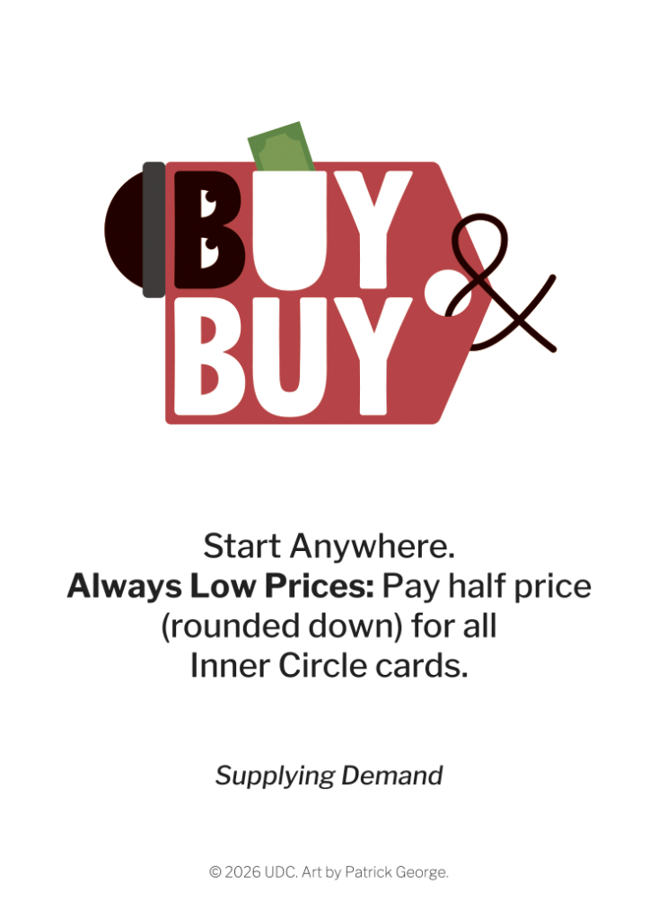When your pawn reaches the Inner Circle, you unlock exclusive cards available only at the top. Each one is unique: once purchased, no one else can have it. Choose wisely.