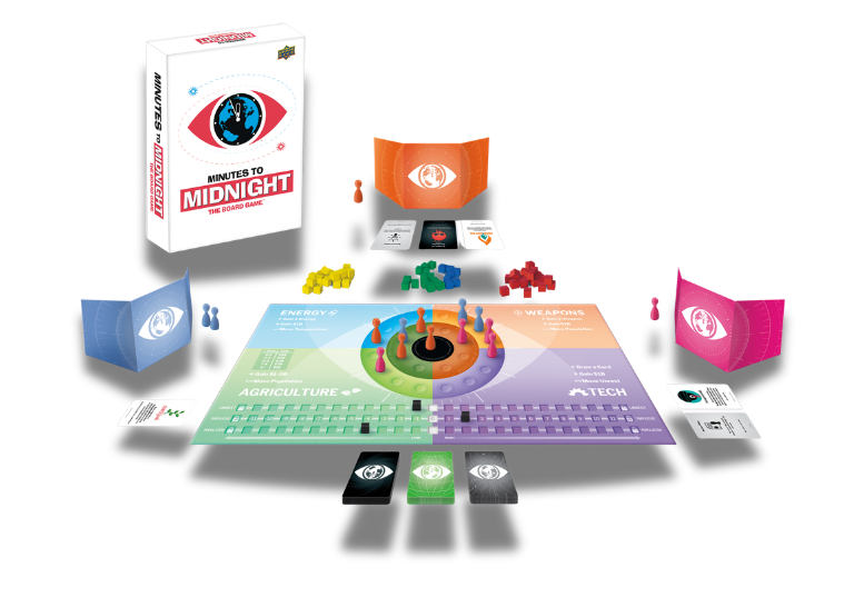 Minutes to Midnight is a game about capitalism and the apocalypse. Each player has a secret plan to destroy the world, a backup plan, and an evil mega corporation at their disposal.