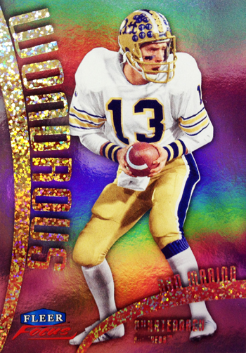 When we create mock-up images of new trading cards, it is very difficult to incorporate printing technologies into a computer image to show what the card will ultimately look like. When it comes to 2013 Fleer Retro Football, that could not be more true. As we began packing out the product one thing we heard more than ever was, “Wow!” And that was coming from people who see trading cards all day, every day. The new Fleer Retro Football cards are absolutely stunning! See for yourself: