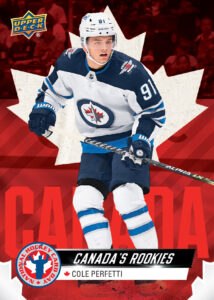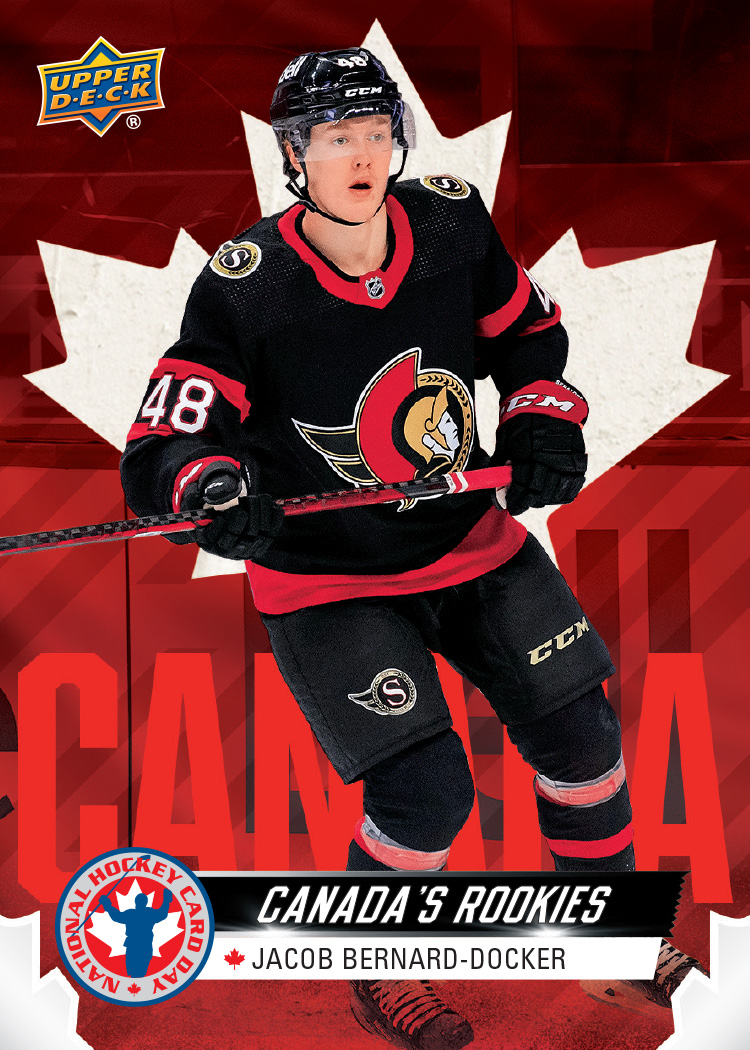 The United States and Canada both have exclusive NHCD (National Hockey Card Day) trading card sets that will be available at participating retailers. International stores will carry the same set as the United States. Each set is made up of sixteen cards consisting of 5 rookies, 5 veterans, and 5 legends. Be on the lookout for the 16th card of this set, Rookie Moments, available as a gift with a $10 purchase of an Upper Deck product at participating shops while supplies last.