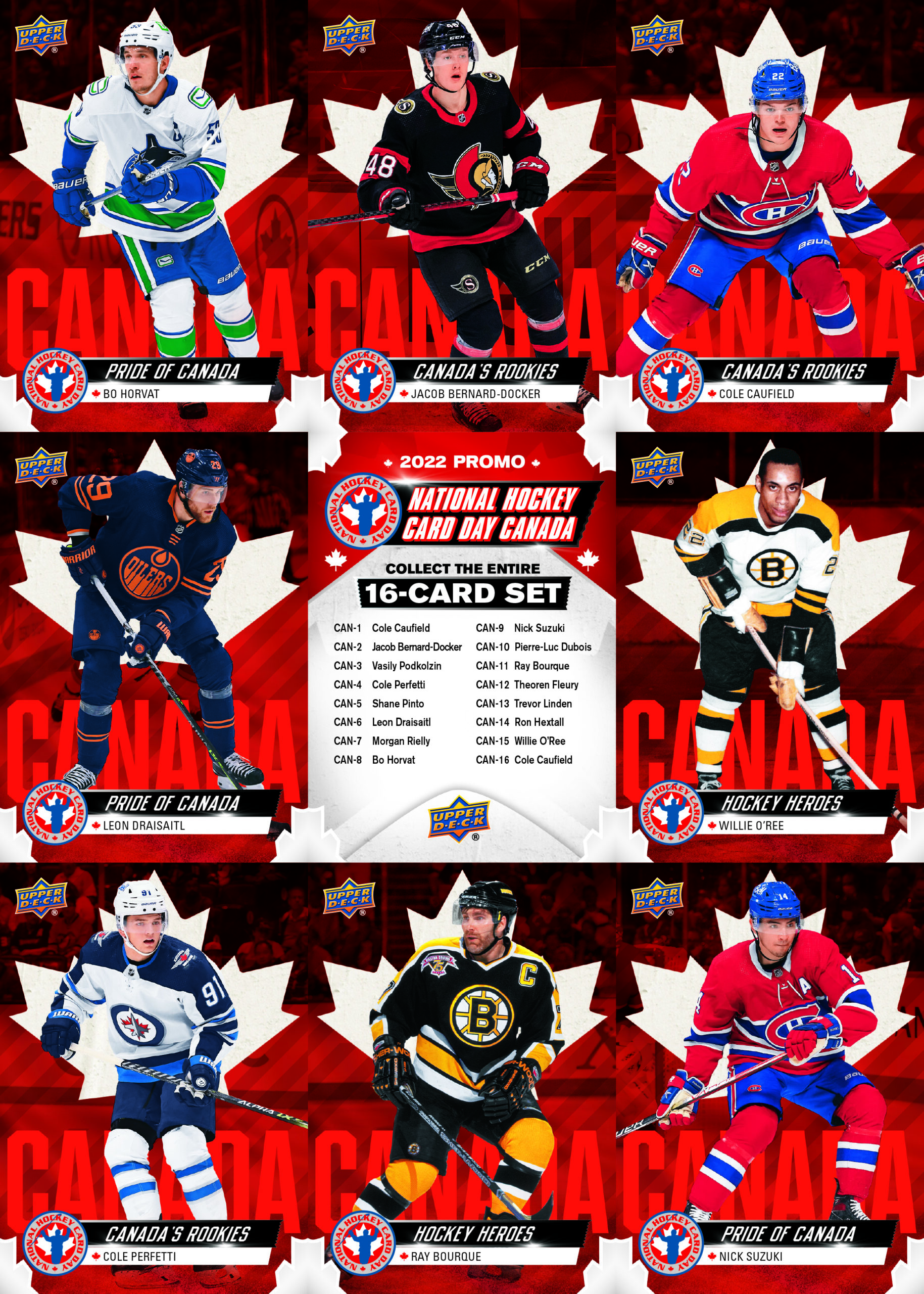 Canadian collectors have one more thing to be excited about! Retail stores throughout Canada will be giving out a FREE 9-card sheet at London Drugs, Toys ‘R Us, Pro Hockey Life, GameStop, and Hockey Hall of Fame. Find a local retailer near you at UpperDeck.com/NHCD.