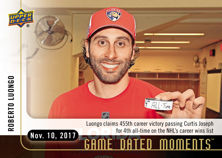 Card #12 (Nov. 10, 2017) – Luongo Passes Curtis Joseph for Fourth Most All-Time Goalie Wins