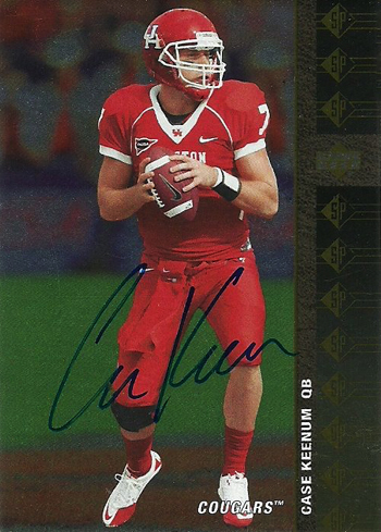 Case Keenum had three touchdowns and 350 yards passing this weekend for the Texans and everyone in Texas is falling in love with him. Given the fact he played his college ball in Houston, there is a built in fan base for Keenum in Texas and fans are quickly hitting eBay to grab whatever they can on him now that they believe he is the heir apparent to Matt Schaub in Houston.