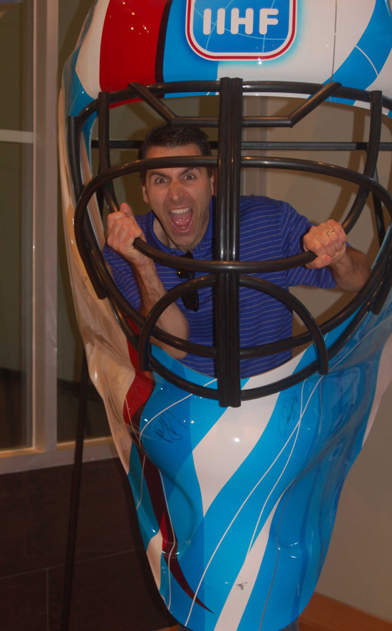 Interestingly enough, with the temperature reaching a very muggy 87 degrees outside, the planned activities at the MasterCard Center’s Rink 1 ice battled a steady five-foot fog much of the morning. With visibility so poor, the on-ice trick shot competition and other assorted photo and video opportunities eventually needed to be shuffled to another rink within the facility. The back-up ice certainly served the purpose, but not before causing a bit of logistic chaos for a few photographers and video personnel along the way. Like always, the UD Crew – spearheaded by Zusman and Jodi Wasserman – rolled with the hiccup and didn’t miss a beat.