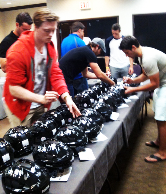 The Upper Deck hockey team landed in Toronto late last night to start preparations for the 2011 NHLPA Rookie Showcase. 26 NHL star rookies will participate in a private signing with Upper Deck today, capturing their autos on card product, pucks and other items that we’ll be sharing with fans in the near future.