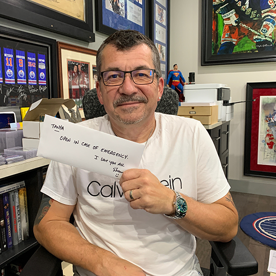 Shawn has a letter that shares details on his collection where his family can find it. It reads, “Open in case of…”