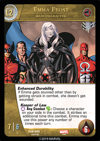 Note: Keeper of Law allows a character to strike an additional time in a combat. The character can strike different characters (if they’re being team attacked, for example), or they can strike the same character multiple times. Also, Emma can use this any number of times each turn, including multiple times in the same combat. So, a character could even strike three or more times ina single combat!
