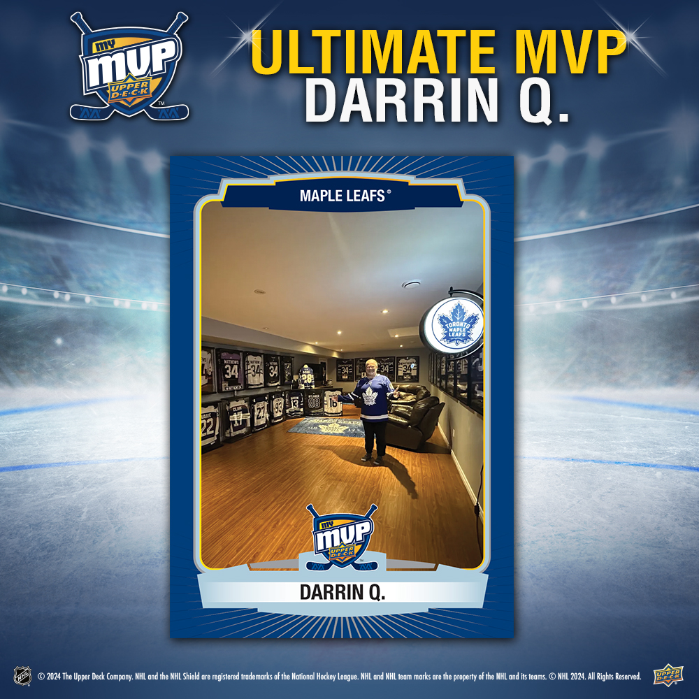 The NHL® fandom has voted and anointed their next Ultimate MVP. After two long rounds of public votes, the contestants worked tirelessly to tap into their fan base and garner as much support as possible to make their dreams come to life. Upper Deck is proud to announce Darrin Quigley as the 2023-24 Ultimate MVP Winner!