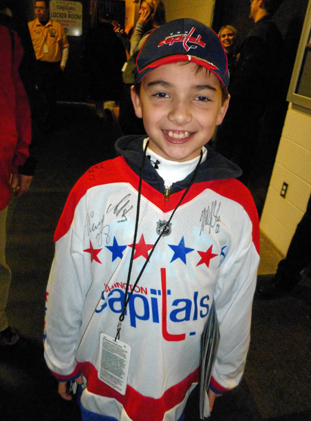 Talk about a memorable day. Robert Jansons, a nine-year-old third-grader from Oakton, Virginia, was selected as the grand-prize winner in Upper Deck’s recent “2011 NHL Winter Classic Stick Kid” essay writing contest. And his prize for delivering the best entry out of the 50-plus submissions that poured in from eager 8-to-14-year-olds living in or around the Washington, D.C. area? To serve as the Washington Capitals “stick kid” during the team’s practice at the outdoor rink at Heinz Field the day before the big New Year’s Day NHL Winter Classic battle against the Pittsburgh Penguins. For Jansons, a competitive youth hockey player and rabid Caps fan, a better holiday present did not exist.