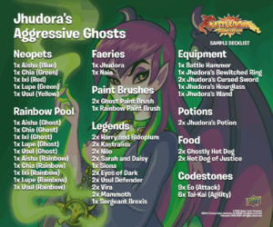 The other deck archetype I will be highlighting today is one led by Jhudora and focuses on Ghost Neopets and discard strategies to be aggressive, looking to knockout the opponent’s Neopet as fast as possible. In most TCGs, this is referred to as Aggro (short for “aggressive”) and that’s exactly what we hope to accomplish with this as well. Similarly to Battle Faerie cards, “Jhudora” cards have an alternate option to playing them when they are sent to the discard from your deck or inventory. I will show a few key cards later. Here is a sample decklist I made: