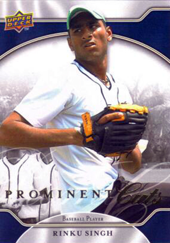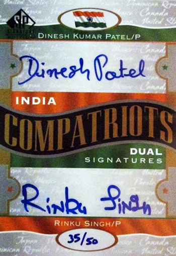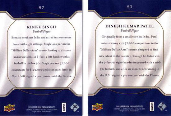 But how did J.B. know his two young prospects had finally made it? Perhaps it was when they had their first trading card deal back in 2009. Upper Deck featured both Rinku and Dinesh in the 2009 Prominent Cuts product.