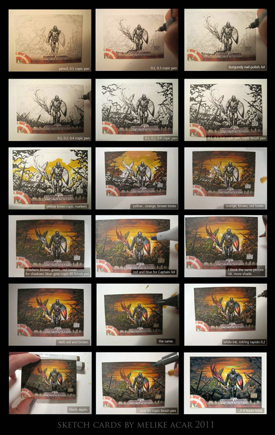 We are excited to bring you a behind-the-scenes look at an artist’s work included in Upper Deck Entertainment’s groundbreaking non-sports releases. Today we want to shine the spotlight on Melike Acar. Our friend Rian Fike shared last month that Melike Acar would be included in an Upper Deck sketch card series for the first time ever in UD’s new Captain America trading cards. And as her sketch cards began to hit the market, they have been some of the top performers because of the high levels of detail she uses and ability to capture a moment.