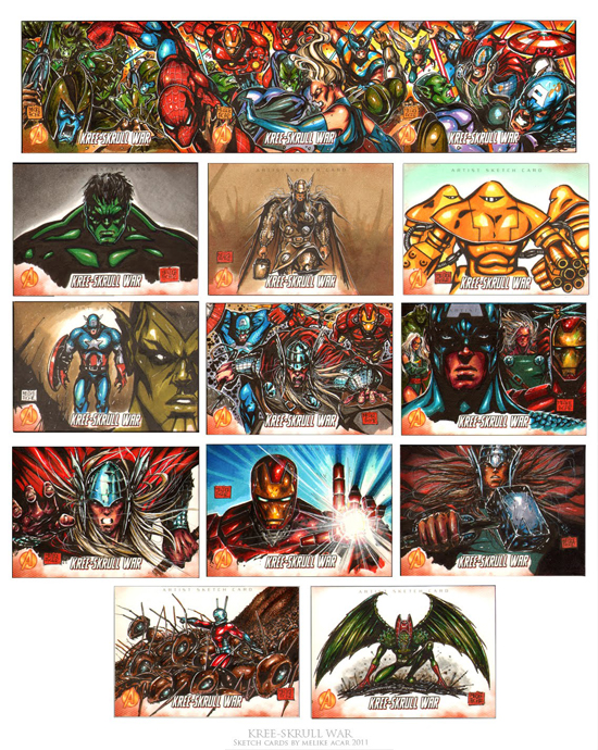 Melike will also be producing sketch cards for Upper Deck’s Avenger’s Kree-Skrull War product which is available in stores now.